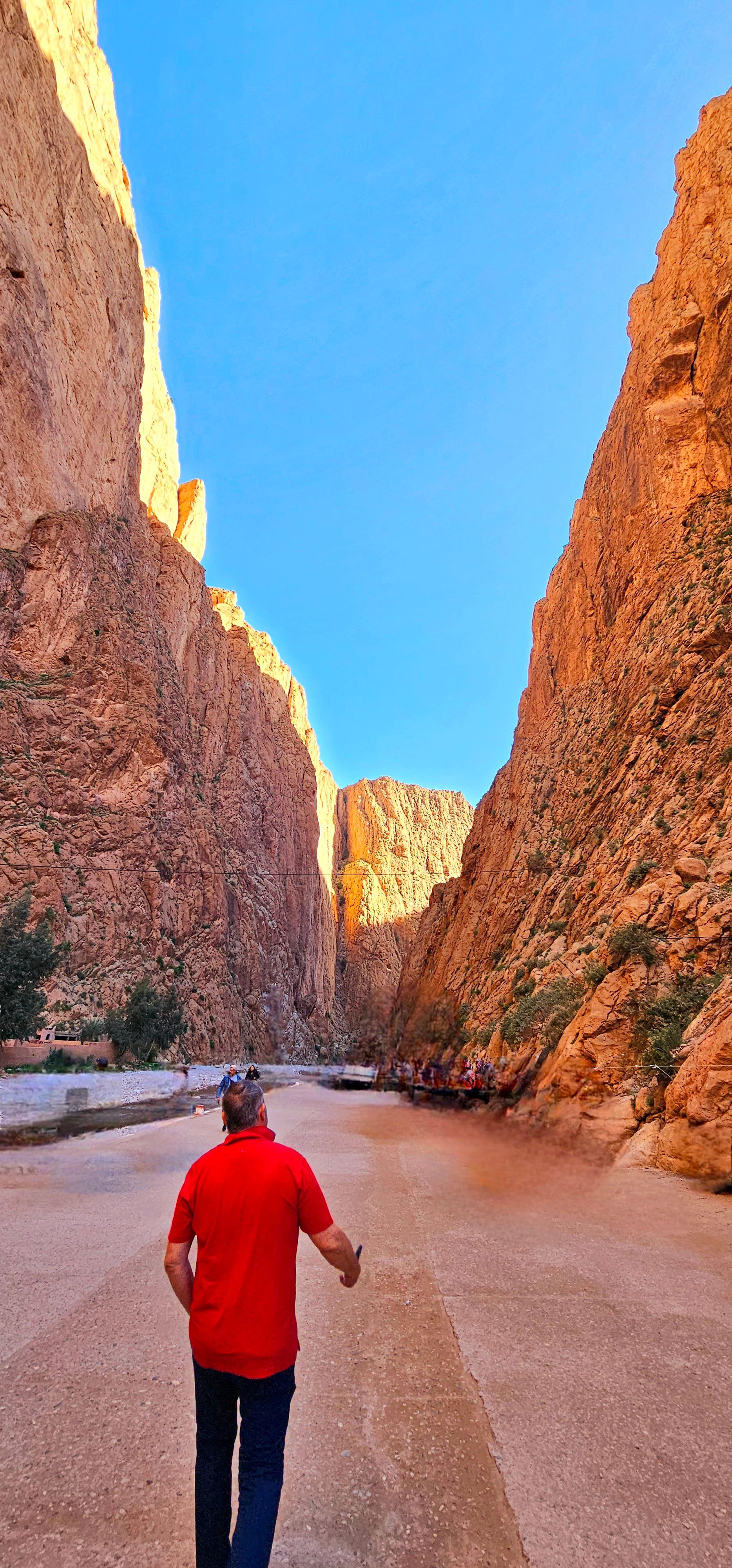 Weiter ging es für uns dann durch das Draa-Tal, das sich über mehr als einhundert Kilometer zwischen Ouarzazate und den Toren der Marokkanischen Wüste erstreckt. Es soll die schönste Straße in Marokko und gleichzeitig die kurvigste sein. Bekannt ist es für seine alten Kasbahs, üppigen Palmenoasen und den sich schlängelnden Draa-Fluss, der dieses trockene Gebiet am Leben erhält. Ein Highlight in diesem Draa-Tal ist die Todra Schlucht - ein sehr spektakulärer Canyon. An der engsten Stelle sind die Felswände dreihundert Meter hoch und die Schlucht nur zehn Meter breit. Dazwischen zu stehen, ist wirklich beeindruckend. Nicht der komplette Teil der marokkanischen Wüste besteht aus weiten Sandmeeren mit romantischen Wüstenformationen. Etwa im Norden der Marokkanischen Wüste finden sich vorwiegend flache, wellige Geröll- und Kieswüsten, so genannte Hammada. Im Süden werden die Geröllflächen durch einzelne Sanddünen – die so genannten Ergs - unterbrochen. Zwei Orte sind für diese großen Sanddünen bekannt: Merzouga und Zagora. Wir waren in beide Erg unterwegs. Merzouga ist mittlerweile sehr touristisch. Jeder der eine Wüstensafari unternehmen oder eine Nacht in der Wüste unterm Sternehimmel verbringen möchte, fährt nach Merzouga. Bei Zagora sieht das noch etwas ruhiger aus. Uns wird der Ort Zagora dennoch immer in Erinnerung bleiben, weil wir uns hier mit unserem BULLI festgefahren haben und dank der Hilfe von Einheimischen nur einen halben Tag gebraucht haben, um uns wieder auszubuddeln. 😲