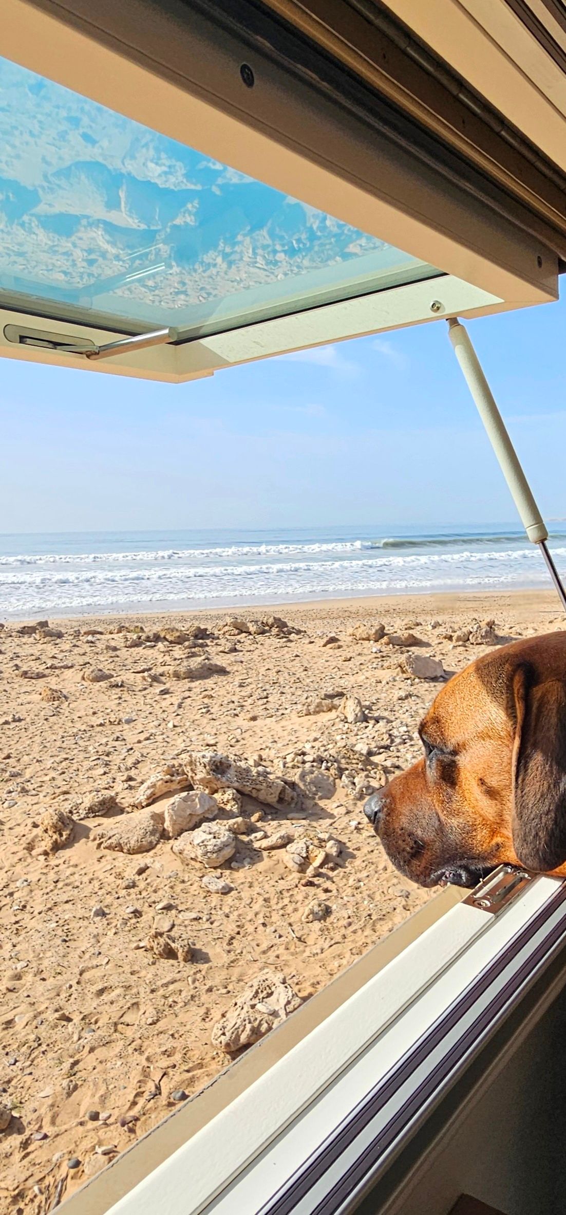 Noch eine kurze Einschätzung zur Sicherheit in Marokko: Wie bereits erwähnt, haben wir zu keiner Zeit ein ungutes Gefühl gehabt. Gefühlt sind wir zwar durch hunderte Polizei- und Militärkontrollen gefahren, aber wir wurden immer sehr freundlich und höflich durchgewunken. Nur zweimal wurden wir angehalten. Das erste Mal, weil wir zu schnell gefahren sind und umgerechnet 15 Euro Bußgeld zahlen mussten. Dann nur ein paar Kilometer weiter das zweite Mal, weil wir zu viel Bußgeld gezahlt haben und die Polizisten uns das zu viel gezahlte Geld zurückgegeben haben. Eine einzige brenzlige Situation gab es. An unserem letzten Tag in Marokko auf dem Weg zur Fähre haben drei Jugendliche versucht kurz vor dem Fährhafen auf unseren BULLI aufzuspringen. Zwei haben es kurzweise auch geschafft. Es ist zwar fast unmöglich aufgrund der Kontrollen und Polizeipräsenz unbemerkt in den Hafen zu gelangen, aber einige marokkanische Jugendliche und vor allem auch Frühlinge aus vielen afrikanischen Ländern versuchen es immer wieder, um so auf das europäische Festland zu gelangen. Die Polizei war aber auch bei diesem Vorfall in der Nähe und glücklicherweise ist nichts weiter passiert.