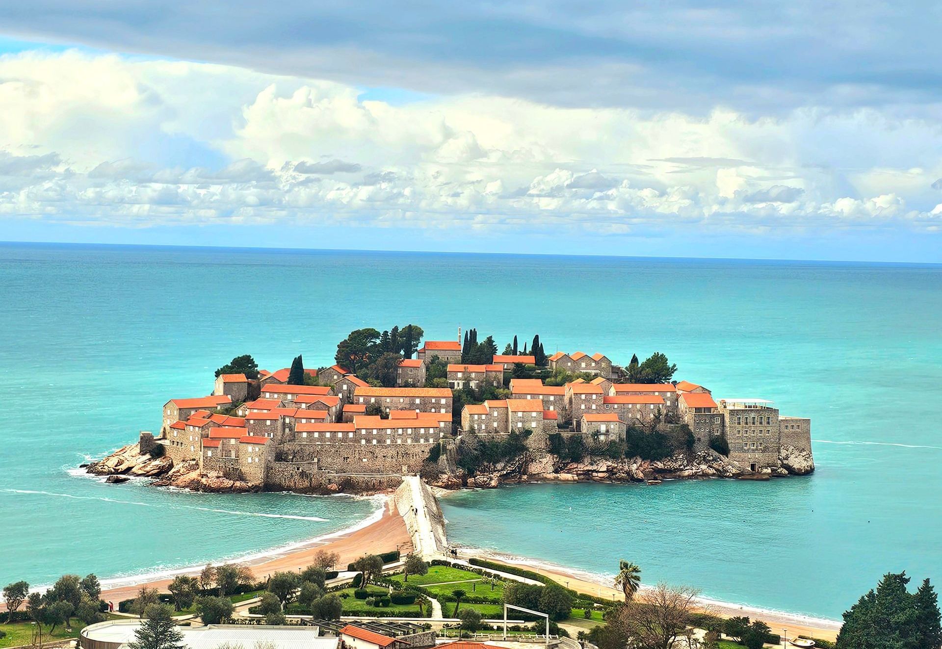 Weiter ging es für uns ins Städtchen Budva und dann zur Adriainsel Sveti Stefan. Früher einmal ein beschauliches Fischerdorf, gehört heute das gesamte Eiland einer Luxushotelkette und die Preise für eine Übernachtung sind entsprechend hoch. Wer die Insel betreten möchte und kein Hotelgast ist, muss entweder ein Entgelt entrichten oder sich einen Platz in einem der Restaurants reservieren. Während die Häuser der Hotelgruppe auf Sveti Stefan beziehungsweise die Unterkunft am Strand seit 2020 aus rechtlichen Gründen geschlossen ist, können Gäste immer noch eine Niederlassung am nahen Miločer Beach buchen. Der hübsche Anblick sowie die gut 800 Olivenbäume in den Straßen machen Sveti Stefan zu einem der beliebtesten Fotomotive bei einem Montenegro-Urlaub.